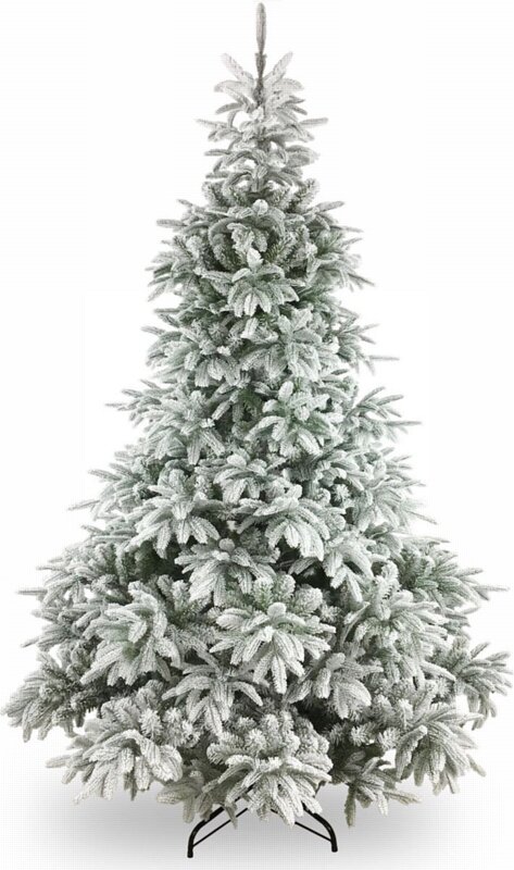 Grote scharnierende kerstboom met witte flocking voor een sfeervol, winters effect. Perfect als indrukwekkende blikvanger.
