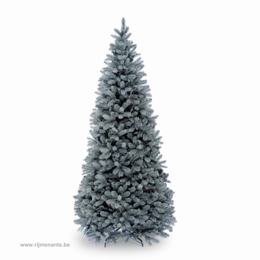 Hoge, smalle blauwe douglas kerstboom, eenvoudig op te zetten en decoratief.