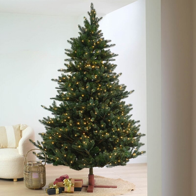 Grote, volle PE-kerstboom met scharnierende takken voor een indrukwekkende feestdecoratie.